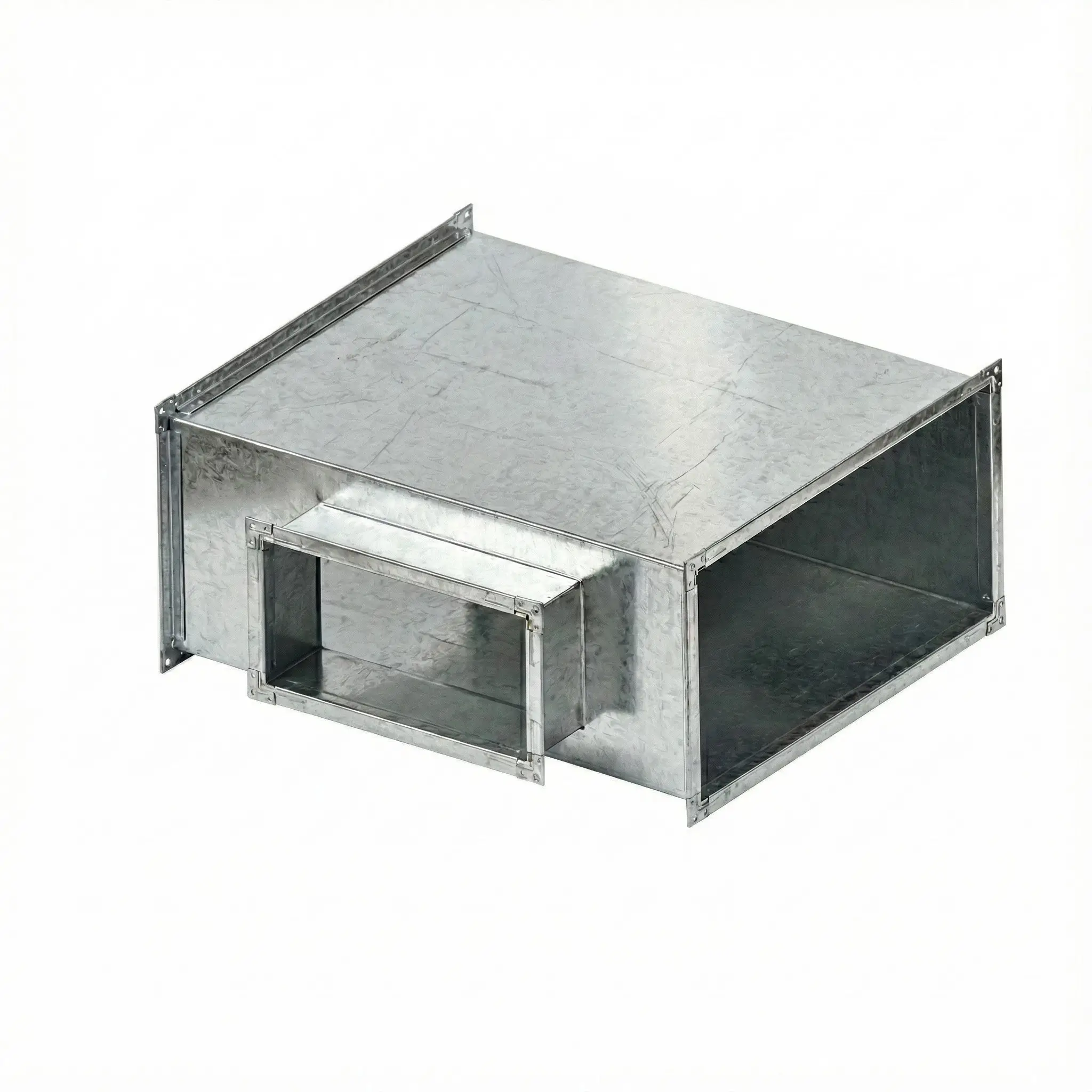 Тройник прямоугольного сечения предназначен для подключения дополнительной ветви воздуховода к основной магистрали вентиляционной системы. Изделие используется в общеобменной вентиляции и системах кондиционирования при формировании разветвлённых сетей воздухораспределения.